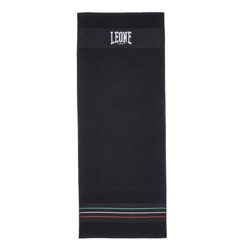 Questo telo in spugna dal colore Nero e arricchito nel design con la presenza del tricolore Italiano con al centro il logo "LEONE 1947" garantisce il massimo della pulizia e dell'igiene mentre ti stai allenando oppure tra un round e l'altro durante un estenuante incontro.