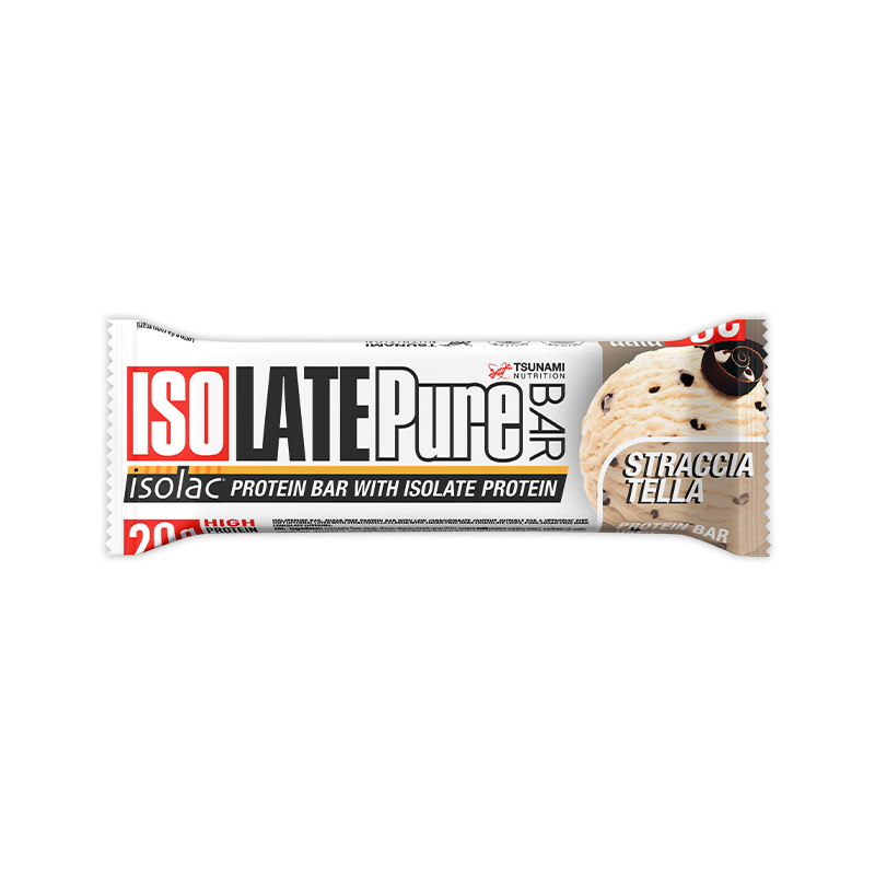 ISOLATE Pure Bar di Tsunami Nutrition è una barretta ricca di proteine a base di ben 20 g di proteine isolate Isolac CFM® brevettate CARBERY® che offrono anche un ridotto contenuto di carboidrati e un elevato apporto di fibre, il tutto avendo all'interno zero zuccheri, da consumare come spuntino prima dell'allenamento o post workout per favorire la crescita muscolare.