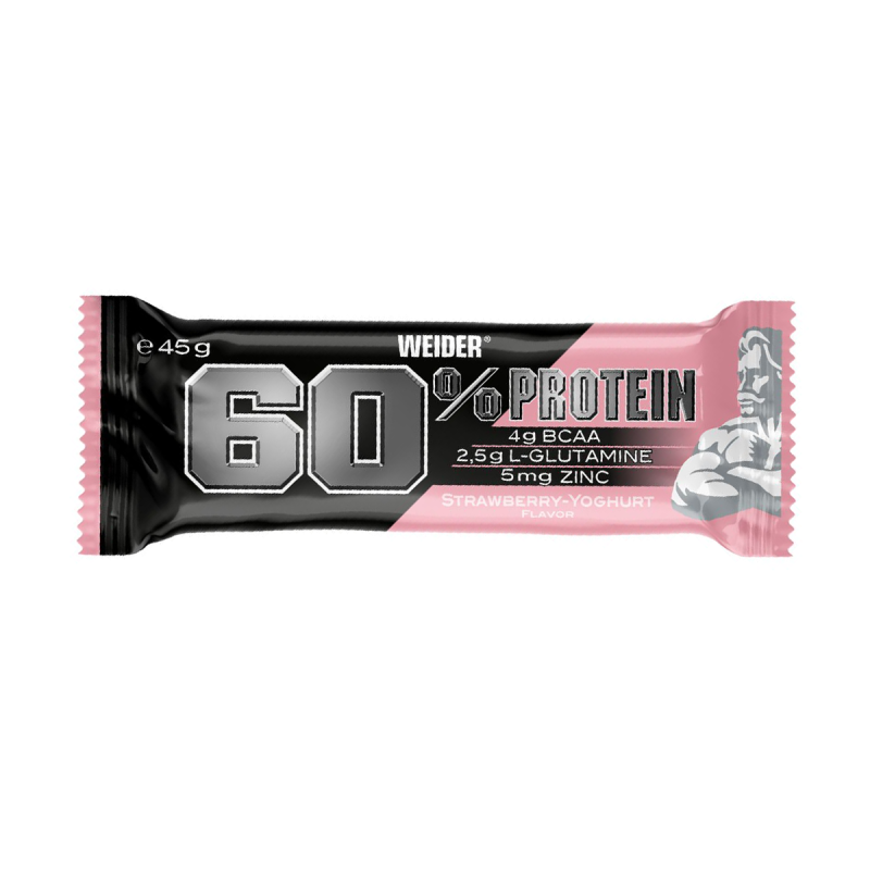 60% Protein Bar di Weider è una barretta proteica con 27 grammi di proteine (ben il 60% di proteine) e solo 0,4g di zuccheri, ricoperta di cioccolato, disponibile in ottimi gusti.