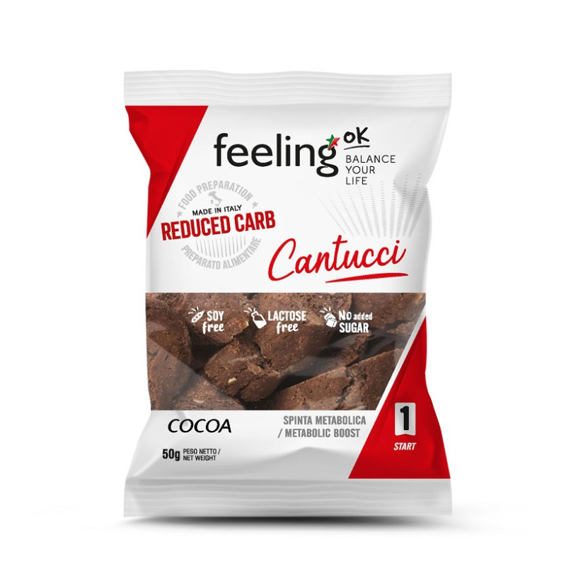 FeelingOk +Protein Cantucci è un prodotto della prima linea di FeelingOk: +Protein. Si tratta di una linea di alimenti a ridotto tenore di carboidrati idonea a far ripartire un metabolismo abituato ad un'alimentazione ricca di zuccheri e amidi.
