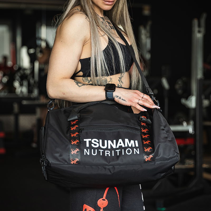La Borsa da palestra con attacco trolley Tsunami Nutrition - Borsa da palestra Tn Clothing con passante per trolley - è l'accessorio perfetto per chi cerca una soluzione funzionale e versatile per trasportare facilmente i propri oggetti, sia durante gli allenamenti in palestra che nei viaggi di lavoro o vacanze. Progettata con un design elegante e pratico, questa borsa si distingue per il suo passante intelligente che consente di agganciarla comodamente al trolley, rendendo più agevole il trasporto e riducendo il peso sulle spalle.