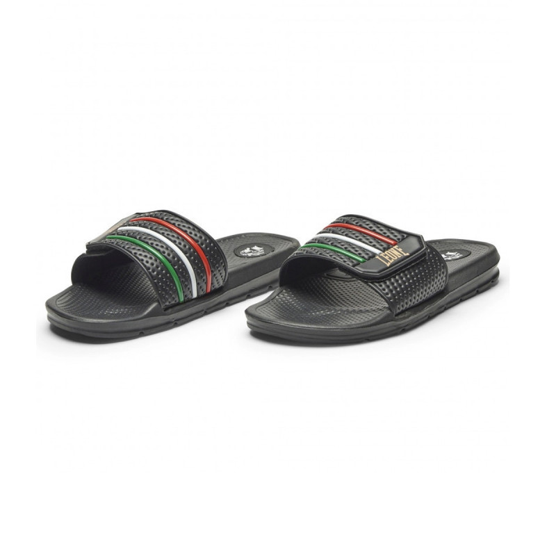 Leone Ciabatte Flag sono un paio di ciabatte a fascia con chiusura in Velcro con dettagli tricolore che conferiscono uno stile unico unito ad un comfort eccezionale.