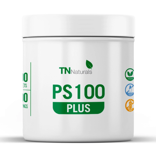 PS 100 Plus di TN Naturals è un integratore a base di fosfatidilserina. Un lipide molto importante presente naturalmente nelle membrane cellulari cerebrali.