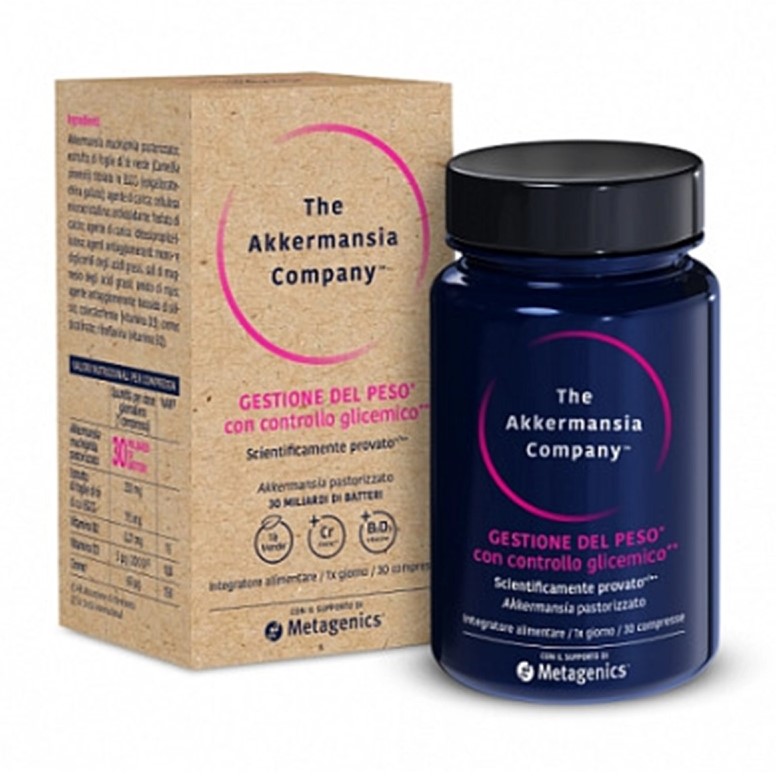 La formula di The Akkermansia Company™ è a base di Akkermansia muciniphila pastorizzato (30 miliardi di batteri), con estratto di tè verde, cromo picolinato e vitamine D e B2. Si tratta di un prodotto rivoluzionario, per la gestione e il controllo del peso corporeo e della glicemia. L'azione del batterio Akkermansia muciniphila rinforza la barriera intestinale, arginando o bloccando l'azione di microrganismi nocivi, modula le reazioni infiammatorie e stimola la normale risposta immunitaria dell'organismo. Il cromo picolinato contribuisce alla riduzione dell'indice glicemico, svolge un'azione importante nel metabolismo degli zuccheri e dei grassi. Il tè verde, grazie al suo contenuto di caffeina, stimola il metabolismo energetico e favorisce la perdita e il controllo del peso corporeo.