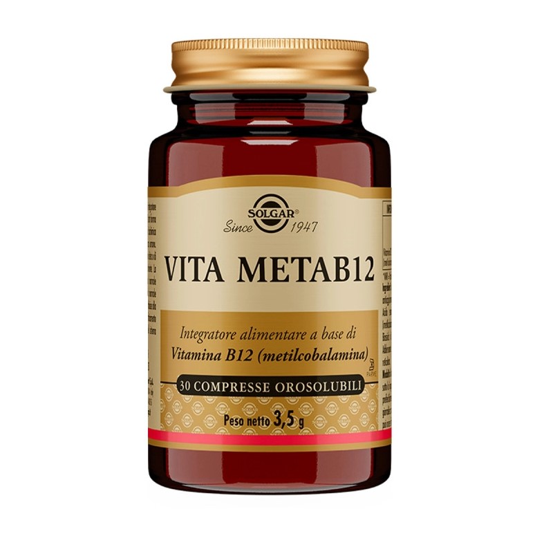 Vita Meta B12 di Solgar è un integratore a base di metilcobalamina, una forma di vitamina b12 ad alto assorbimento disponibile in compresse orosolubili e certificate vegan, senza glutine e senza lattosio.