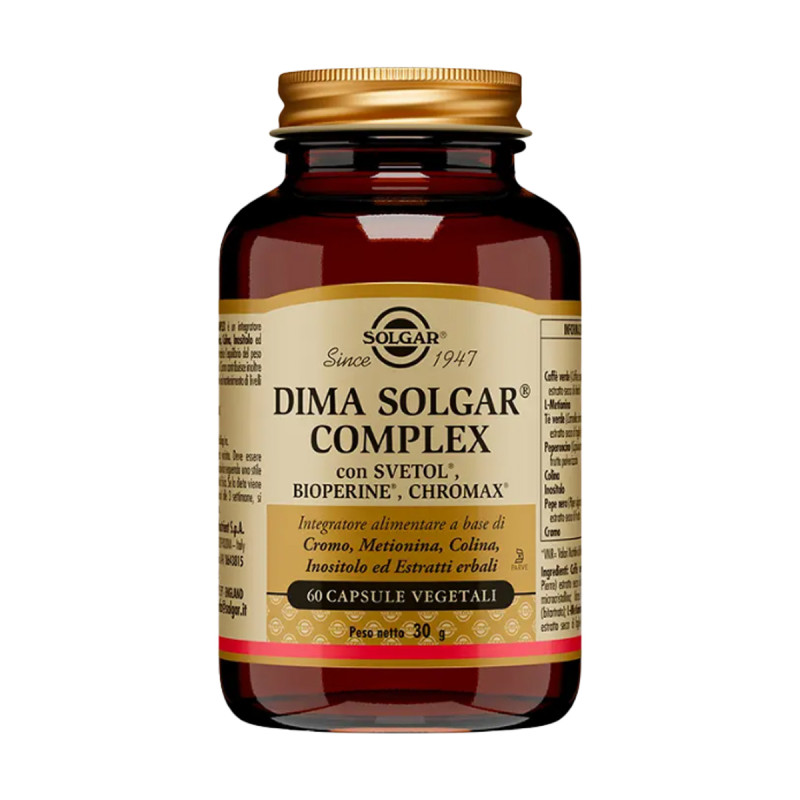 DIMA SOLGAR COMPLEX 60 CPS, Integratore alimentare a base di Cromo, Metionina, Colina, Inositolo ed estratti erbali per favorire l'equilibrio del peso corporeo, il drenaggio dei liquidi e il mantenimento di livelli normali di glucosio nel sangue.