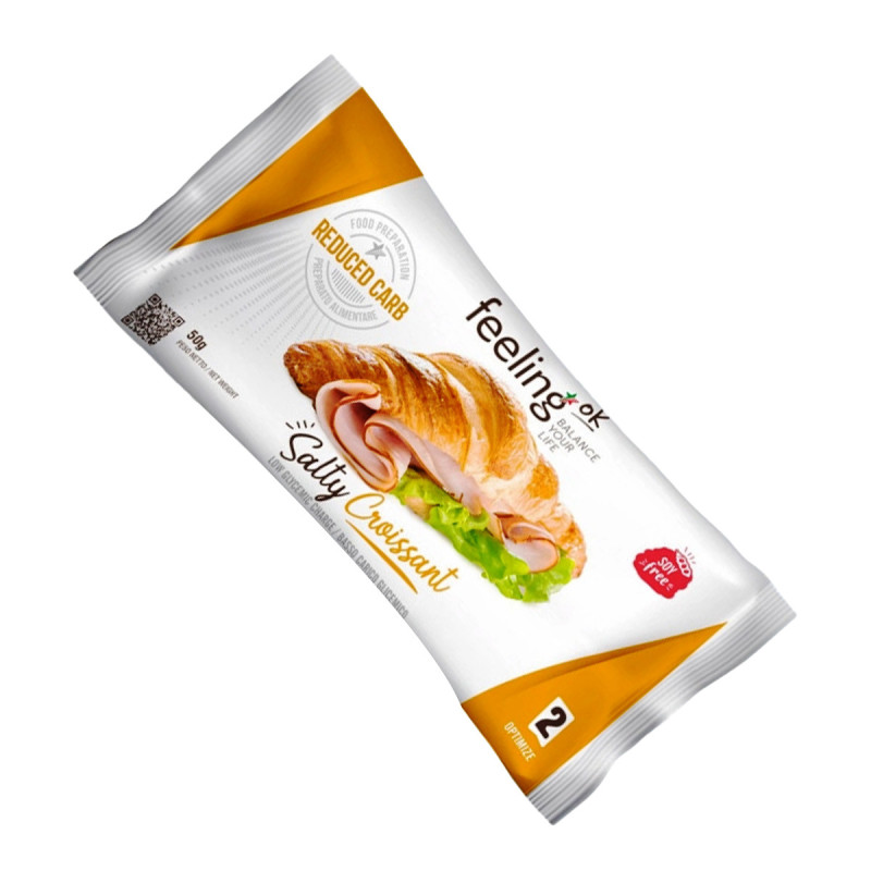 FeelingOk Optimize Salty Croissant è un cornetto della seconda linea di prodotti di FeelingOk: OPTIMIZE. Si tratta di una linea caratterizzata dal basso carico glicemico ed è appositamente studiata per ottimizzare un‘alimentazione a ridotto apporto di carboidrati.