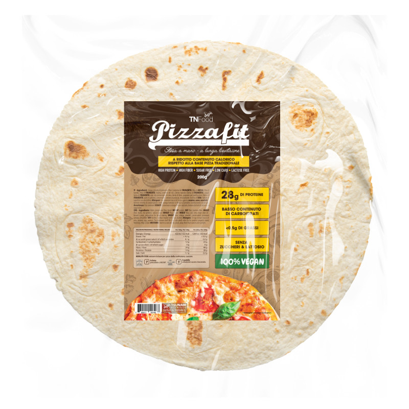 Con un contenuto calorico ridotto rispetto a tutte le altre basi per pizza presenti sul mercato, Pizzafit ha un contenuto proteico di 28 grammi per porzione, un basso contenuto di carboidrati e <0,5 grammi di grassi. Inoltre, la ricetta di Tn Food Pizzafit è priva di zuccheri e lattosio ed è certificata 100% VEGAN.