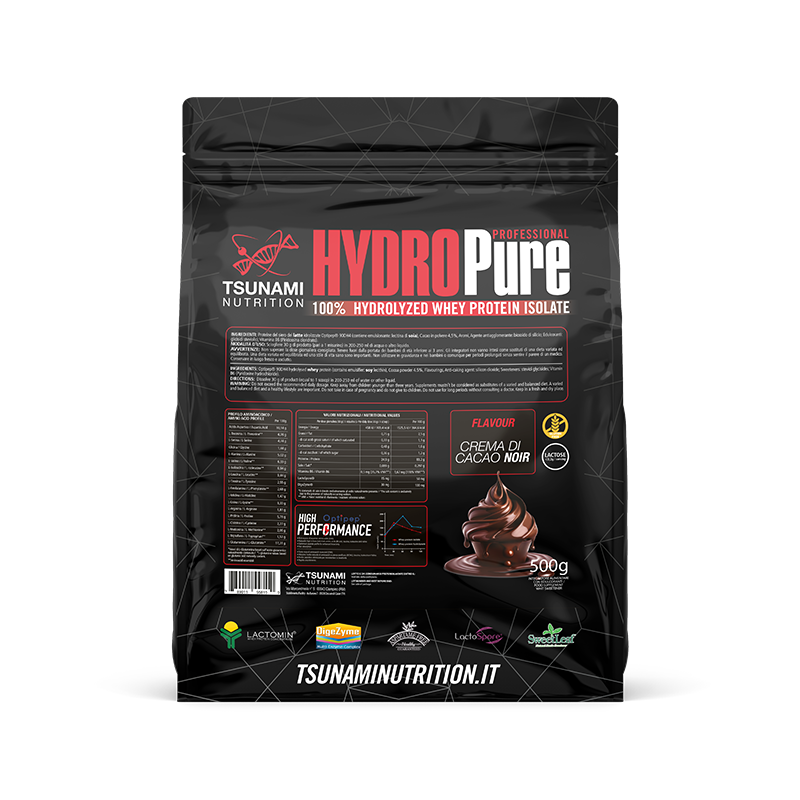 Tsunami Nutrition HYDRO Pure PROFESSIONAL è una proteina passata attraverso il processo dell'idrolisi. L’idrolisi è un procedimento attraverso cui le proteine sono frammentate in molecole di dimensioni ridotte, ossia di-peptidi, tri-peptidi e oligo-peptidi, emulando il risultato dell’azione digestiva che il nostro organismo effettua sulle proteine a livello gastrointestinale.