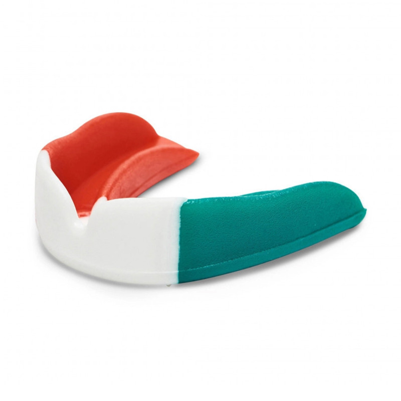 A tal proposito Leone ha realizzato un Paradenti con i colori della bandiera Italiana, ossia il tricolore rosso-bianco-verde, che aiuta a bloccare la mandibola al resto del cranio rendendolo un corpo unico quando la bocca è chiusa e permette di distribuire le eventuali forze d’impatto in maniera uniforme.