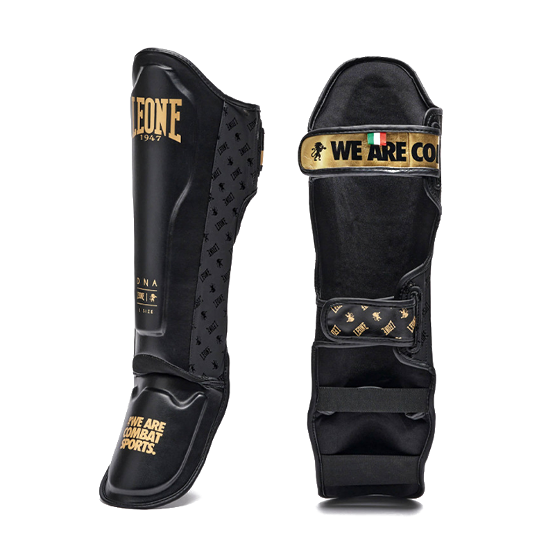 Leone Paratibia Extra Rigido DNA è una protezione per la tibia in tela di colore nero con dettagli in Oro tipici della linea DNA che permette di proteggerle da eventuali colpi e infortuni che possono accadere durante la pratica di alcune discipline dove vengono coinvolti gli arti inferiori come ad esempio il Muay Thai o la Kickboxing.