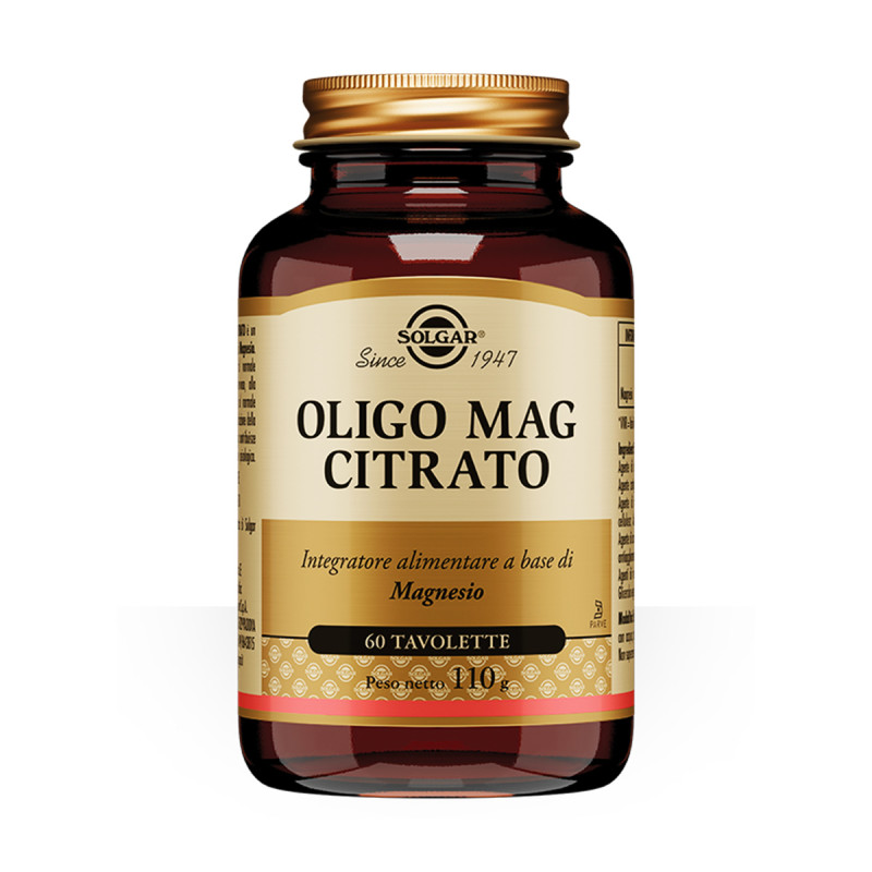 Solgar OLIGO MAG CITRATO è un integratore alimentare a base di magnesio citrato che supporta il normale funzionamento del sistema nervoso e muscolare, contribuisce al normale metabolismo energetico e contribuisce alla riduzione di stanchezza e affaticamento. Il magnesio citrato è una forma organica di magnesio che viene ben assorbita dall’organismo.