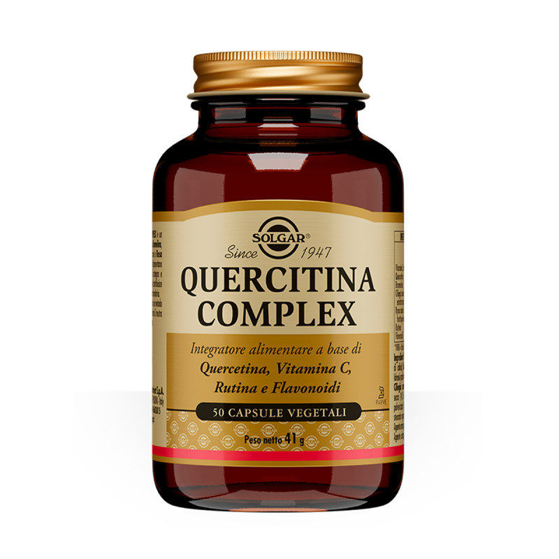 Solgar Quercitina Complex - 50 compresse è un integratore alimentare a base di Quercetina, Vitamina C, Rutina e Flavonoidi. Il contenuto è arricchito da Rosa canina e Ciliegia acerola.